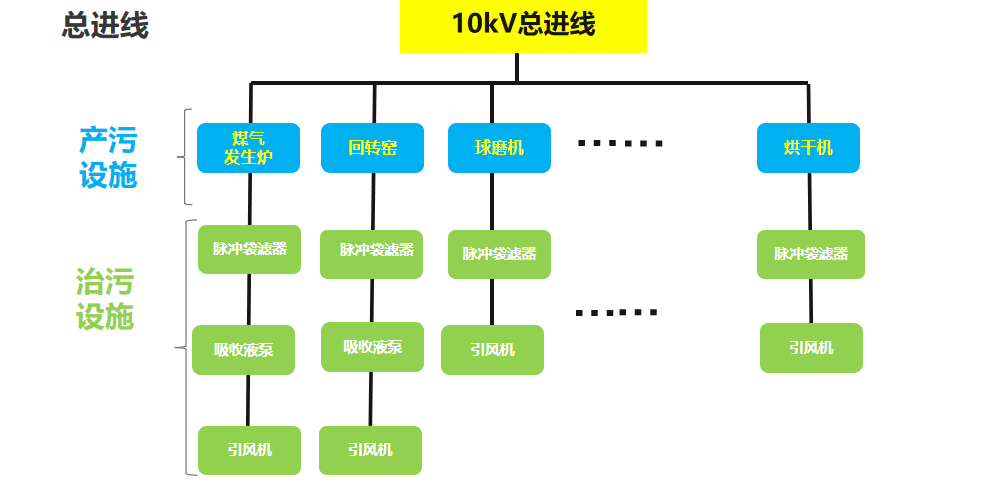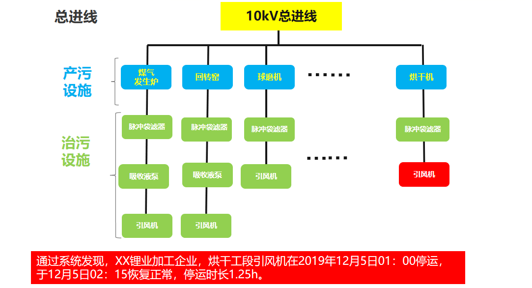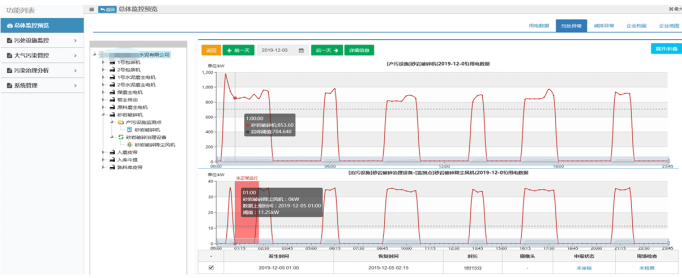 系统围绕环保“三同时”要求,建立产污、治污及排污设备运行耦合联动关系,及时发现污染治理设施非正常运行。同时通过企业总生产用电、车间用电的数据采集,有效解决恶劣天气下以及行政处罚企业停限产无法实时量化监管的问题。主要包含:污染治理设施用电状况监控、大气应急管控执行情况监控两大功能。
